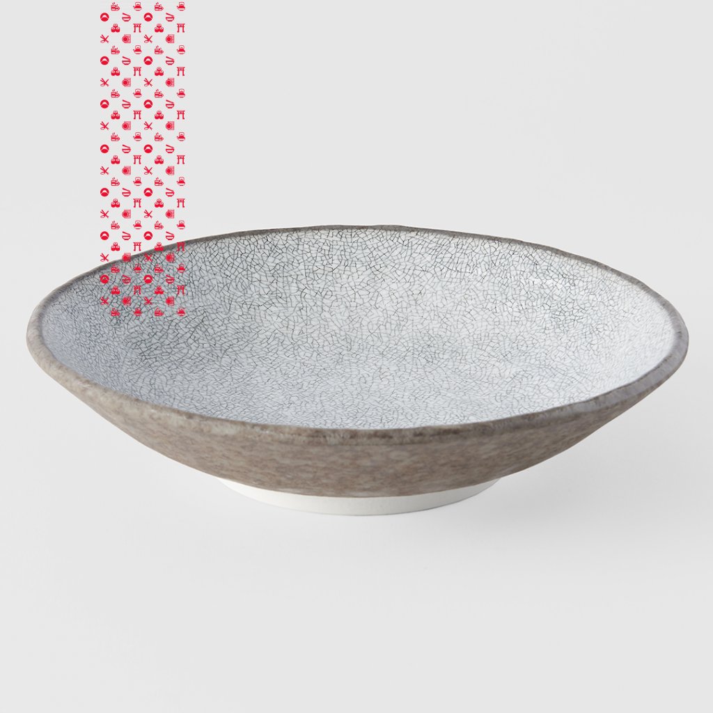 Velká, mělká mísa z Crazed Grey kolekce je ideální pro vaši polévku nebo nudle.