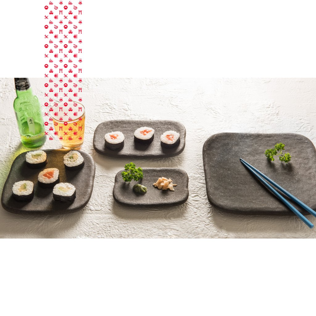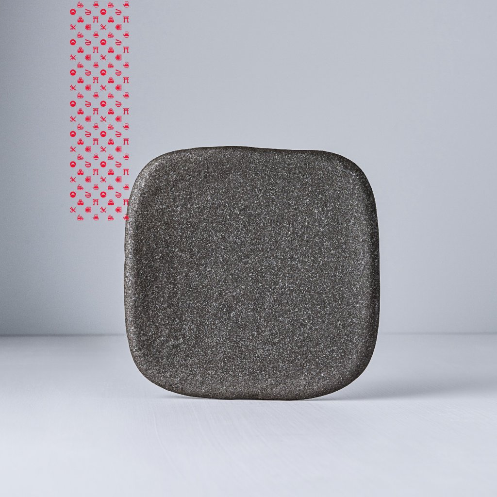 Kamenná deska v tvaru čtverce z kolekce Stone Slab v černém provedení s šedými odlesky připomíná kámen. Deska je ručně vyrobena z odolné keramiky. Rozměr kamenné desky je 19 x 19 cm a jeho výška je 2 cm. Je vhodná do myčky na nádobí i do mikrovlnné trouby. Můžete ji použít na servírování drobného občerstvení (sushi, jednohubky, sýry, uzeniny atd.).