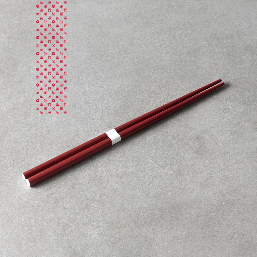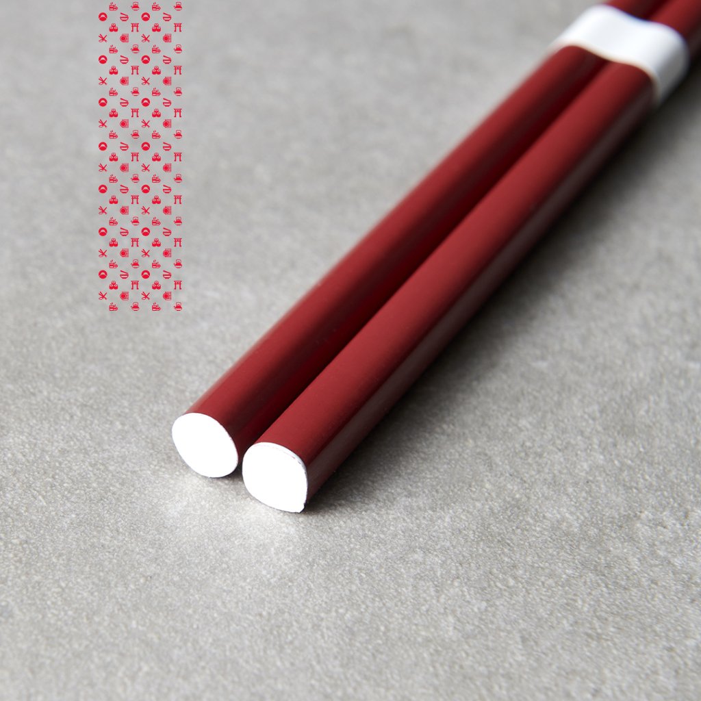 Lakované jídelní hůlky v tmavě červené barvě s bílým akcentem na vrchu. Stylový doplněk pro vaši asijskou hostinu.