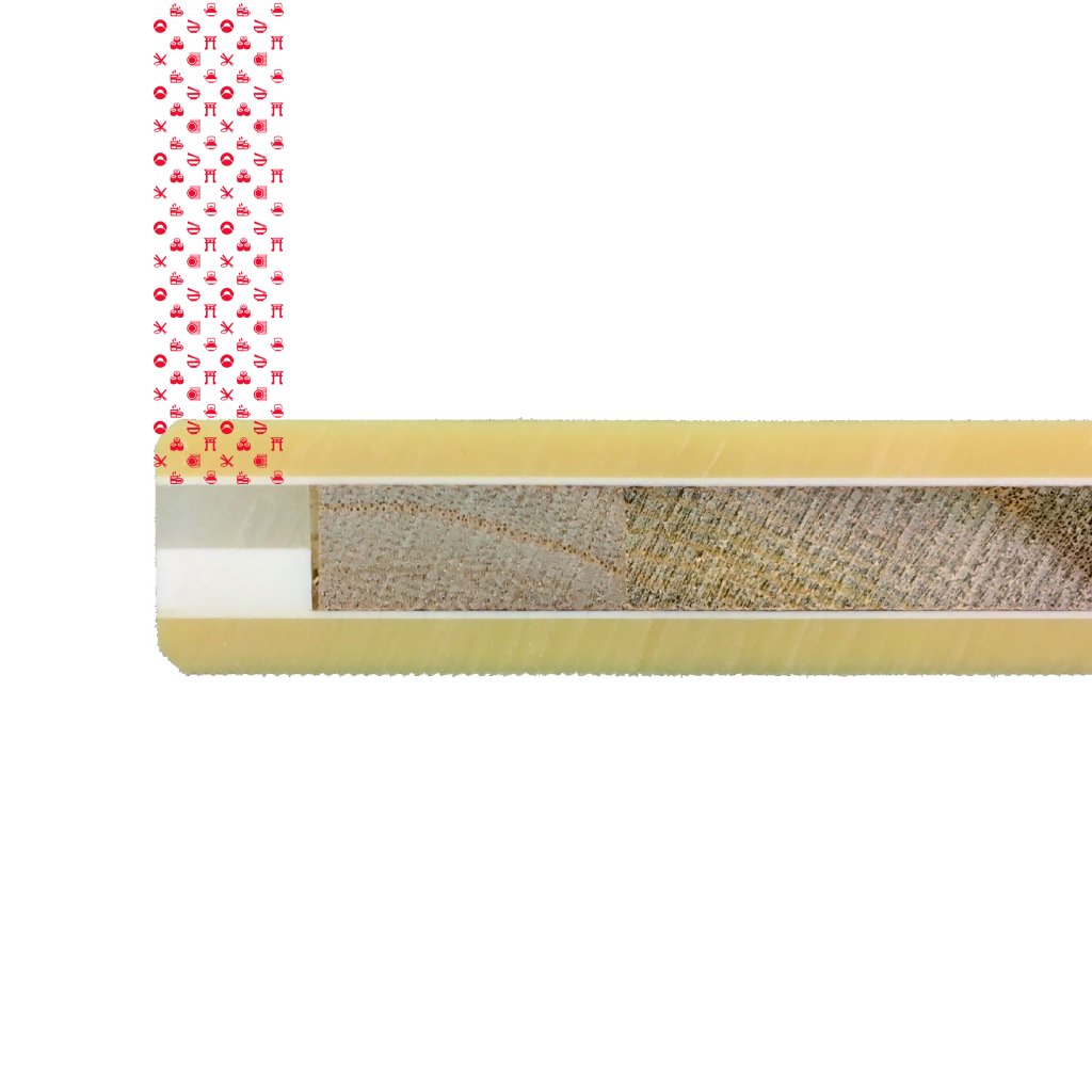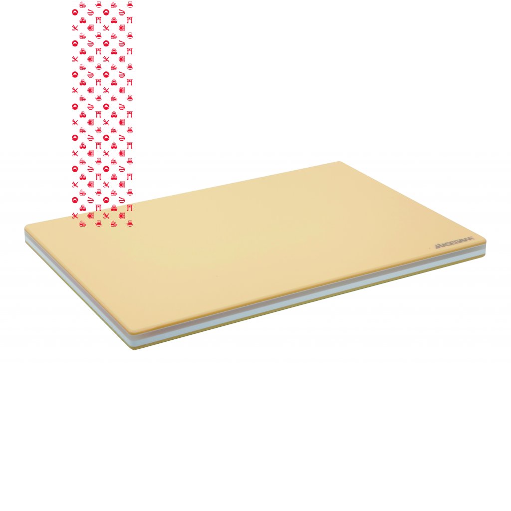 Krájecí prkénko s dřevěným jádrem pro japonské nože - nikdy se nedeformuje, je šetrné k ostří nože a o 30-50% lehčí než běžná prkénka.