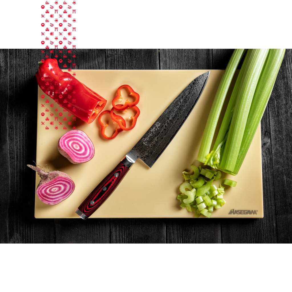 Hasegawa krájecí prkénko s tuhým dřevěným jádrem.