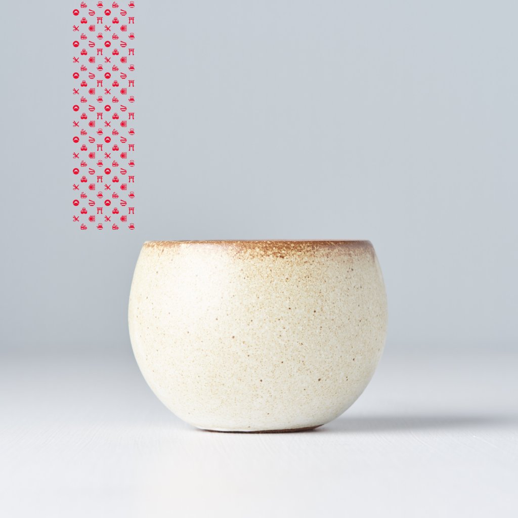 Tento kalíšek na čaj je proveden v béžové barvě a jeho okraj lemuje hnědá linka. Tvar kalíšku také odpovídá tradičním miskám na čaj, které můžete, jako Japonci, klást k ústům pomocí obou rukou.