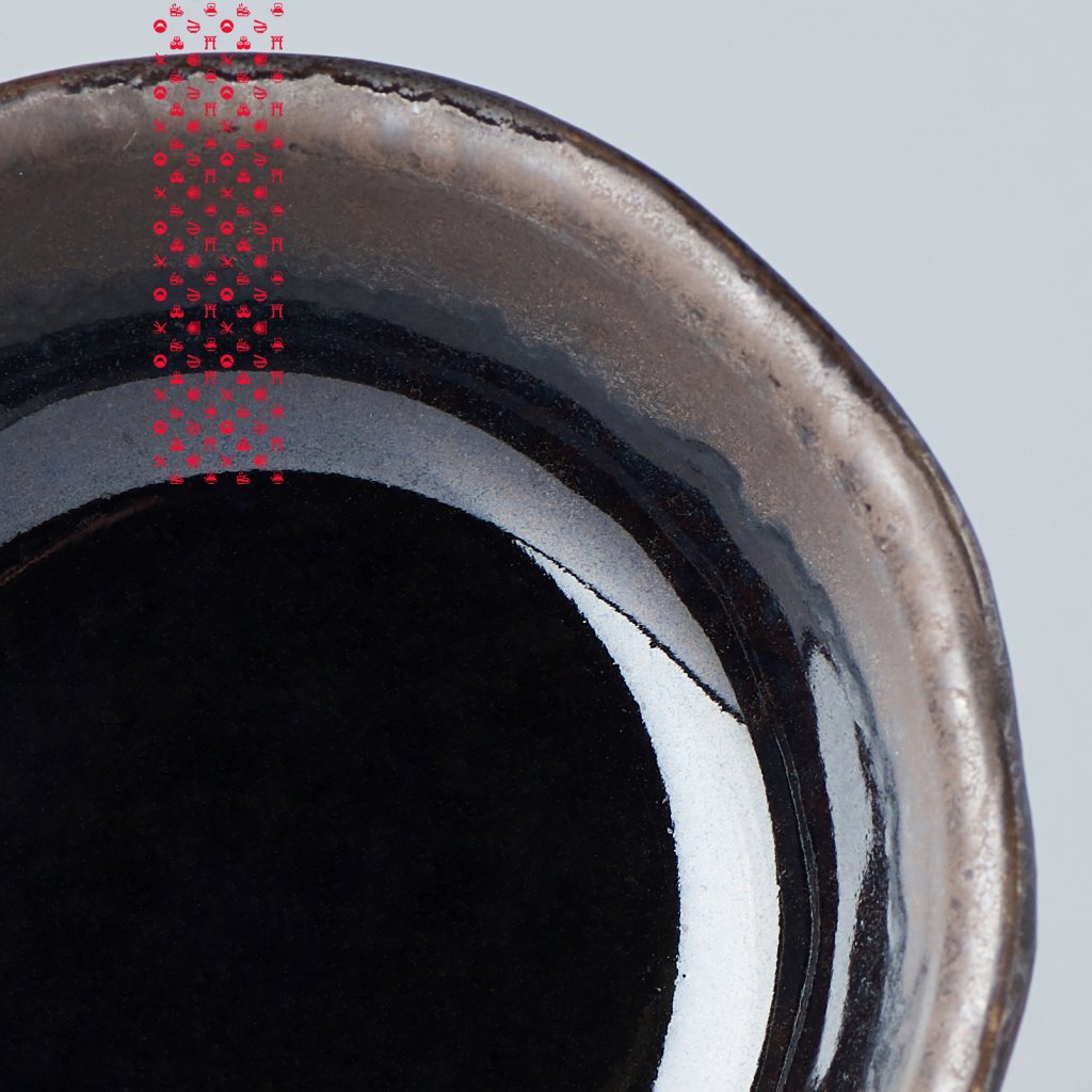 Miska má lesklou glazuru v černé barvě a okraj v hnědé barvě a v matném provedení. Miska má malý průměr a tak je vhodná na omáčky například na namáčení sushi či vietnamských závitků. Má jemně nepravidelný okraj, který poukazuje na ruční práci.