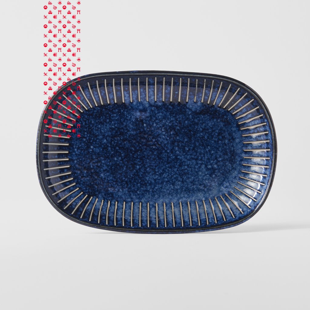 Ridged Indigo Ovální Talíř 19 x 13 cm