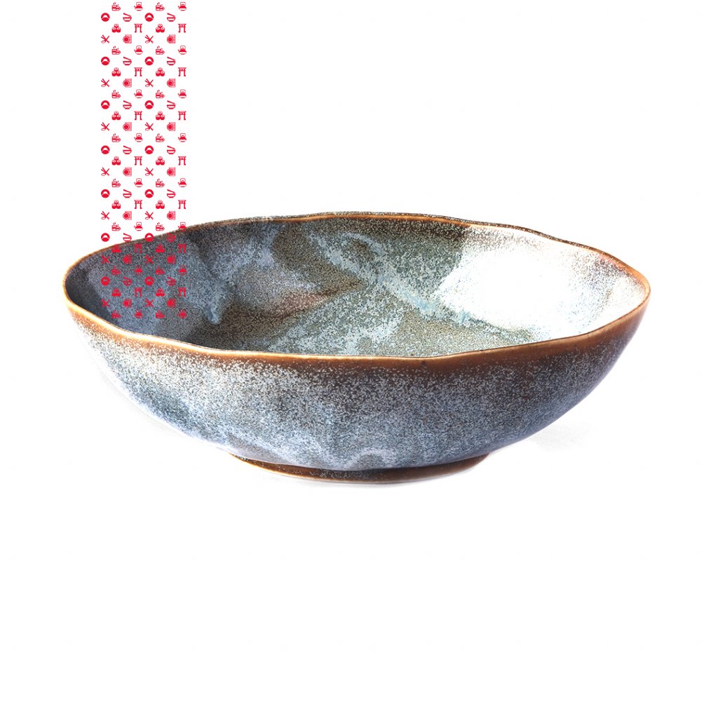 Velká mísa od výrobce Made in Japan je vyrobena ručně z kvalitní přírodní keramiky, která neobsahuje zdraví škodlivé látky. Každý kus je originál. Keramika je dovezena přímo z Japonska. Je vhodná do myčky nádobí i do mikrovlnné trouby.