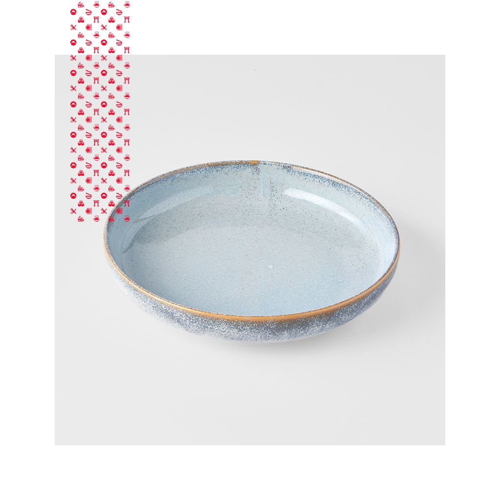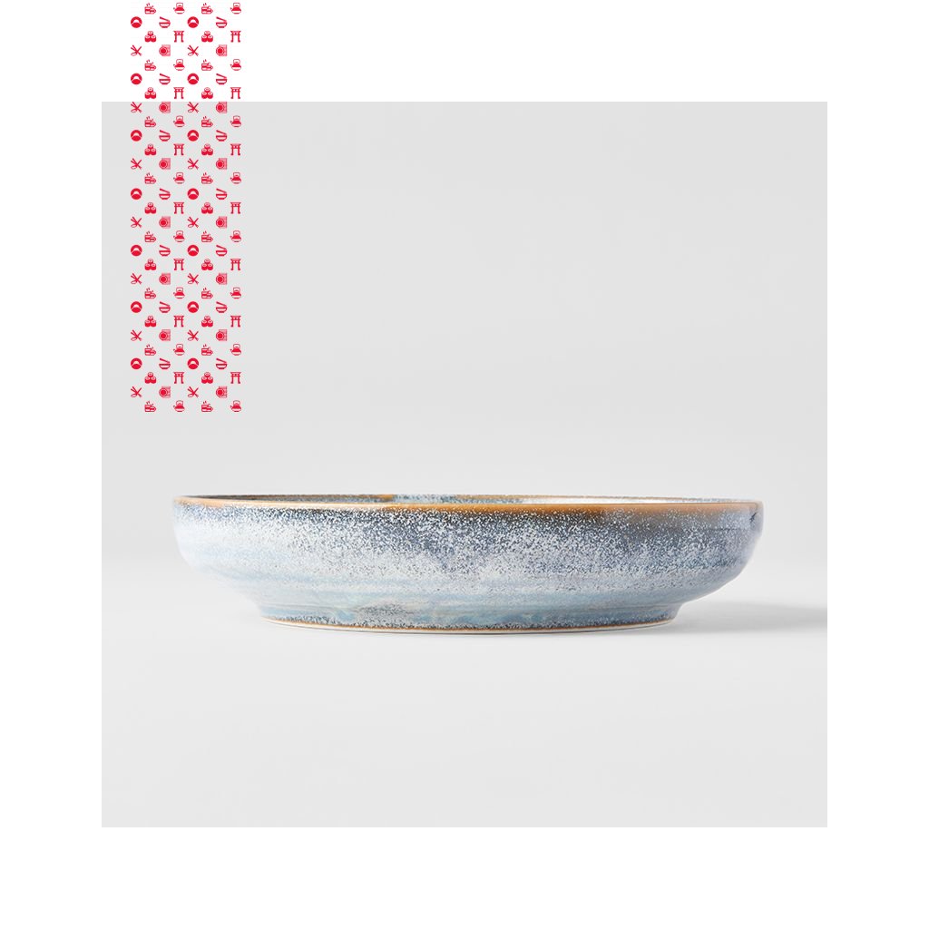 Mělký talíř od výrobce Made in Japan je vyroben ručně z kvalitní přírodní keramiky, která neobsahuje zdraví škodlivé látky. Každý kus je originál. Keramika je dovezena přímo z Japonska. Je vhodný do myčky nádobí i do mikrovlnné trouby.