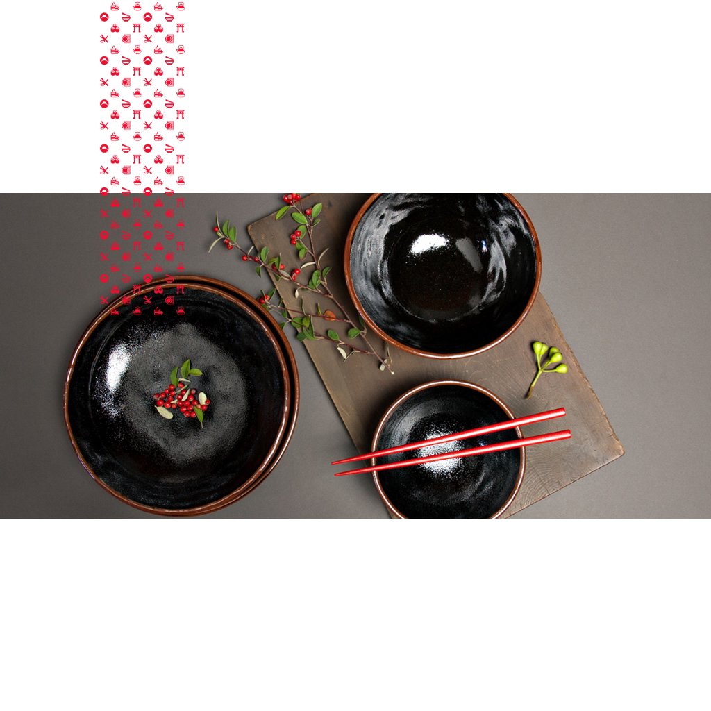 U nádobí z kolekce Tenmokku Vás okamžitě zaujme výrazný hnědočervený lem rámující jeho okraje. Díky němu získává nádobí neobvyklý vzhled, který akcentuje jeho unikátnost.