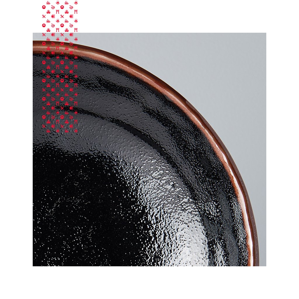 U nádobí z kolekce Tenmokku Vás okamžitě zaujme výrazný hnědočervený lem rámující jeho okraje. Díky němu získává nádobí neobvyklý vzhled, který akcentuje jeho unikátnost.