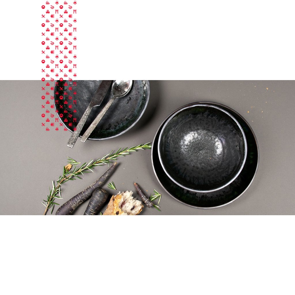 Nádobí z kolekce Matt je provedeno v matné povrchové úpravě a v černo-šedé barvě. Okraje jsou opatřeny lesklou glasurou, která nádherně kontrastuje s matným středem. Některé nádobí z kolekce Matt má i částečně lesklou povrchovou úpravu a tam, kde se matný finiš setkává s lesklým, dochází k zajímavému efektu, který připomíná volně stékající barvu.